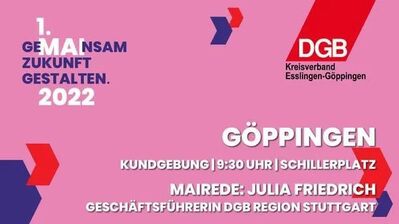 Wir treffen uns am 01. Mai um 09:00 Uhr auf dem Schillerplatz und unterstützen den SPD Kreisverband beim Aufbau und am Infostand. Um 09:30 Uhr beginnt dann die Kundgebung.