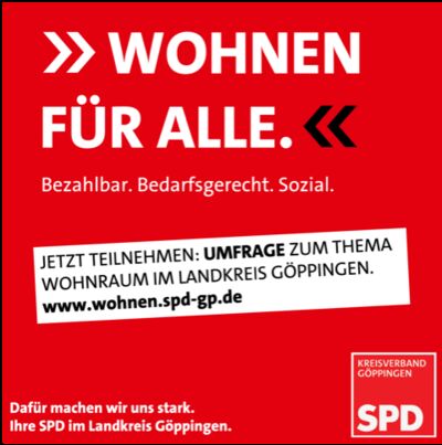 Um Bedürfnisse und Erfahrungen vor Ort zu sammeln, hat die SPD im Landkreis Göppingen eine Umfrage gestartet, in der sie konkret nachfragt, wo die größten Probleme beim Thema bezahlbares Wohnen liegen. „Wir laden alle Bürgerinnen und Bürger ein, sich an der Umfrage zu beteiligen, damit wir ein möglichst genaues Bild vor Ort erhalten“, betont Hartmann mit Blick auf die Erhebung. Zum ersten Mal soll damit eine konkrete Perspektive auf die drängendsten Probleme des Wohnungs- und Immobilienmarkts im Landkreis Göppingen eröffnet werden. Die SPD-Ortsvereine werben in den nächsten Wochen durch Flyer-Aktionen vor Ort und im Internet für die Beteiligung an der Umfrage.