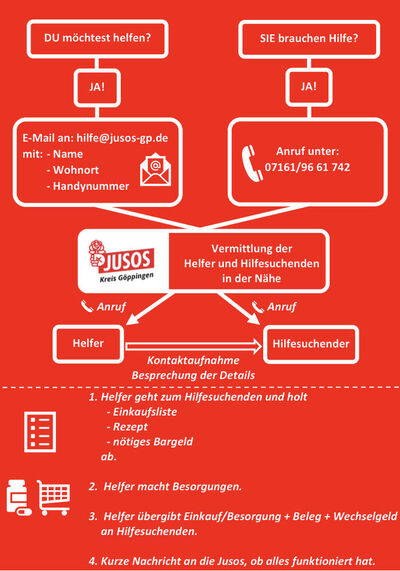 - Wenn Sie Hilfe anbieten, bitten wir um eine kurze Nachricht mit Wohnort und Handynummer an hilfe@jusos-gp.de