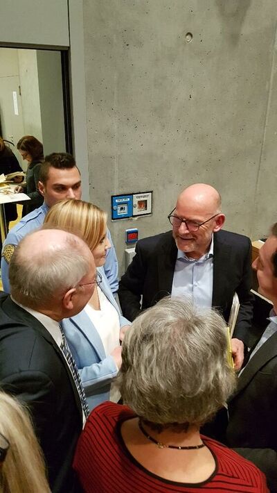 Bei der Bürgerinfo zur Filstalbahn im Uhinger Uditorium übergab die SPD-Kreisvorsitzende Sabrina Hartmann gemeinsam mit den Landtagsabgeordneten Sascha Binder und Peter Hofelich sowie der SPD-Kreistagsfraktionsvorsitzenden Susanne Widmaier einen Karton mit von Pendlerinnen und Pendlern unterschriebenen Postkarten an Verkehrsminister Hermann. Mit den Karten macht die Kreis-SPD gemeinsam mit hunderten Unterzeichnern auf die Situation auf der Filstalbahn aufmerksam.