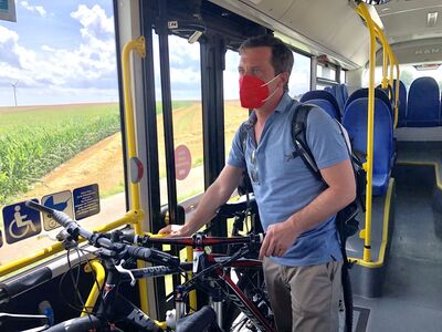 Ins Rollen gebracht hatte das Bus-Rad-Experiment der ehemalige Lautersteiner Gemeinderat Erich Distel, der in einem Brief auf unzureichende ÖPNV-Verbindungen hingewiesen hatte. Dazu hatte Binder versprochen, den Busverkehr im Lautertal selbst zu testen und sich für Verbesserungen einzusetzen – gesagt, getan: In Eybach machte sich Sascha Binder mit Rad und Linienbussen auf den Weg nach Weißenstein. Dabei wurde schnell deutlich, dass etwa beim Platzangebot Nachholbedarf bestehe: „Im Bus gibt es für Fahrräder oft zu wenig Platz“, stellte Binder fest, „zumal markierte Standflächen in den Eingangsbereichen auch für Rollatoren zur Verfügung stehen müssen“. Bei mehreren Fahrrädern stoßen die Busse dann an ihre Grenzen. Während beim Platzangebot Verbesserungen nötig sind, waren die Verbindungen im Selbstversuch allesamt pünktlich.