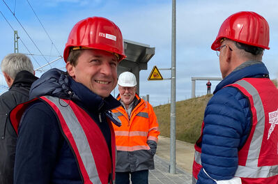 Auf Deutschlands dritthöchster Eisenbahnbrücke spazieren zu gehen, ist ein besonderes Erlebnis. Die letzte Gelegenheit, in luftiger Höhe die Baufortschritte beim Filstalviadukt nahe Mühlhausen in Augenschein zu nehmen, nutzten jetzt der Landtagsabgeordnete Sascha Binder und sein Ulmer Parlamentskollege Martin Rivoir. In gut einem Jahr soll die Neubaustrecke Ulm-Wendlingen in Betrieb gehen, dann werden nur noch Züge auf der 85 Meter hohen Brücke verkehren.