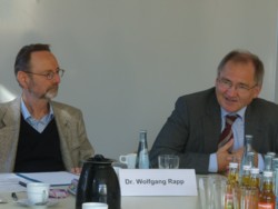 Peter Hofelich (rechts) beim 2. Zukunftsforum im Gespräch mit Dr. Wolfgang Rapp. FOTO: SPD„Unser Landkreis muss sich durch hervorragende Ausbildung und Weiterbildung positiv differenzieren!“, gab MdL Peter Hofelich das Motto beim zweiten Forum ‚Zukunft Landkreis Göppingen‘ aus. Dr. Wolfgang Rapp, Mitglied in der Enquete-Kommission Weiterbildung des Landtages, nahm den Ball auf: „Es ist ein Gewinn, dass durch die Enquete jetzt endlich mehr über Erwachsenenbildung gesprochen wird“.